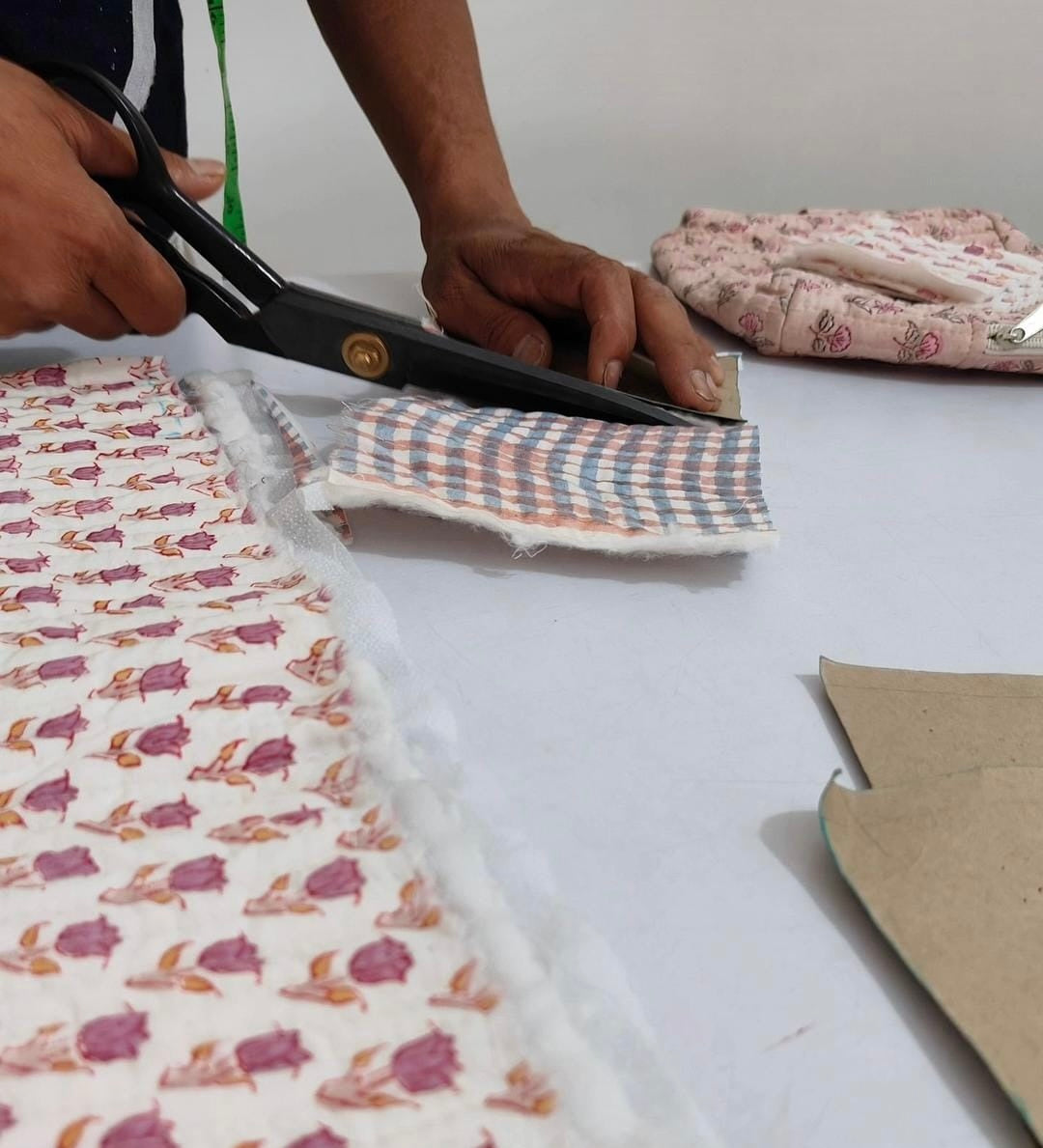 We work closely with these artisans who use natural and organic materials from soft cotton in our dresses to reclaimed fabrics in our Gujarati tops and Rajputi jackets. Every step from selecting the fibers to the final stitch is done with care and respect for both people and planet.