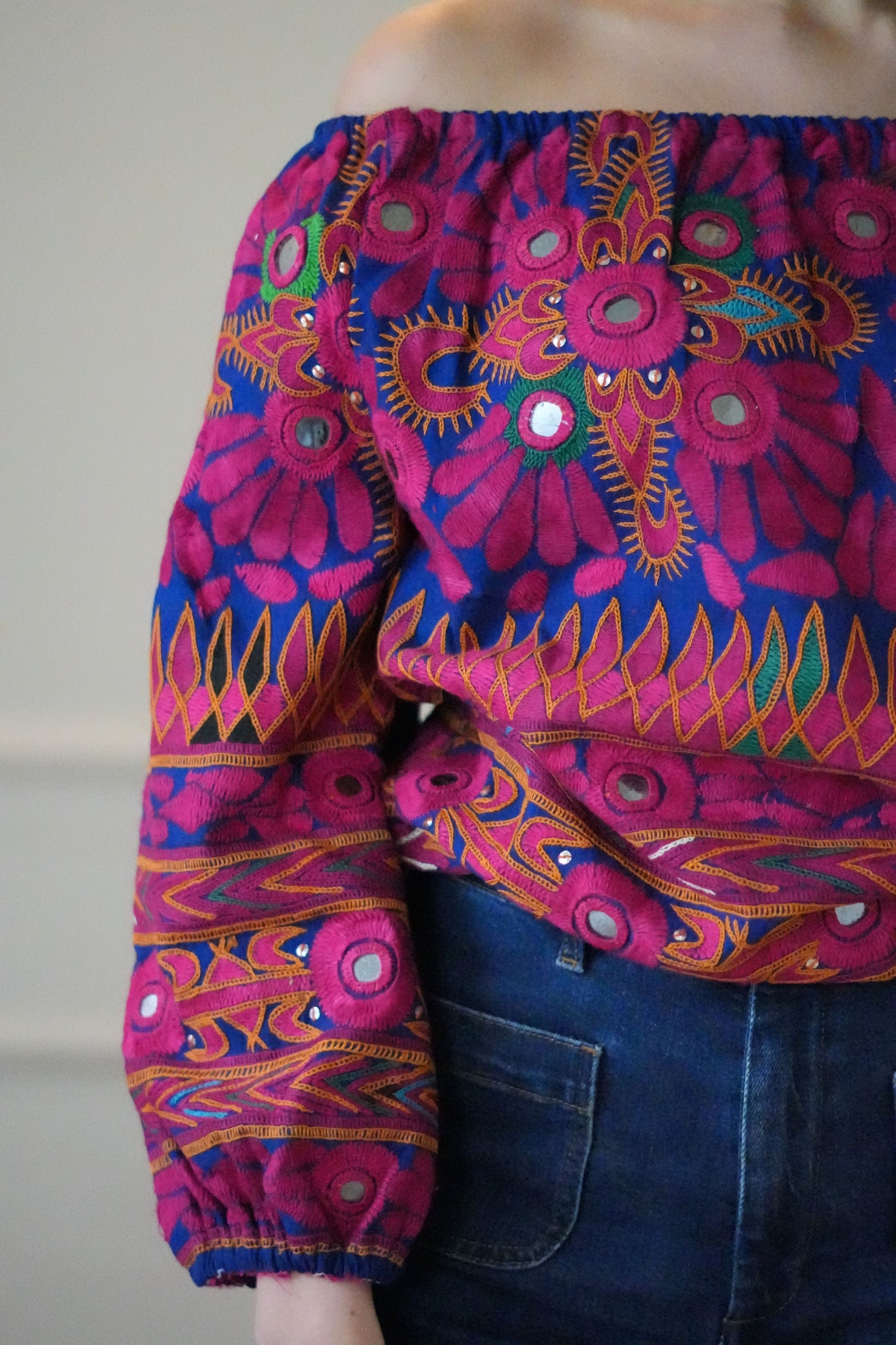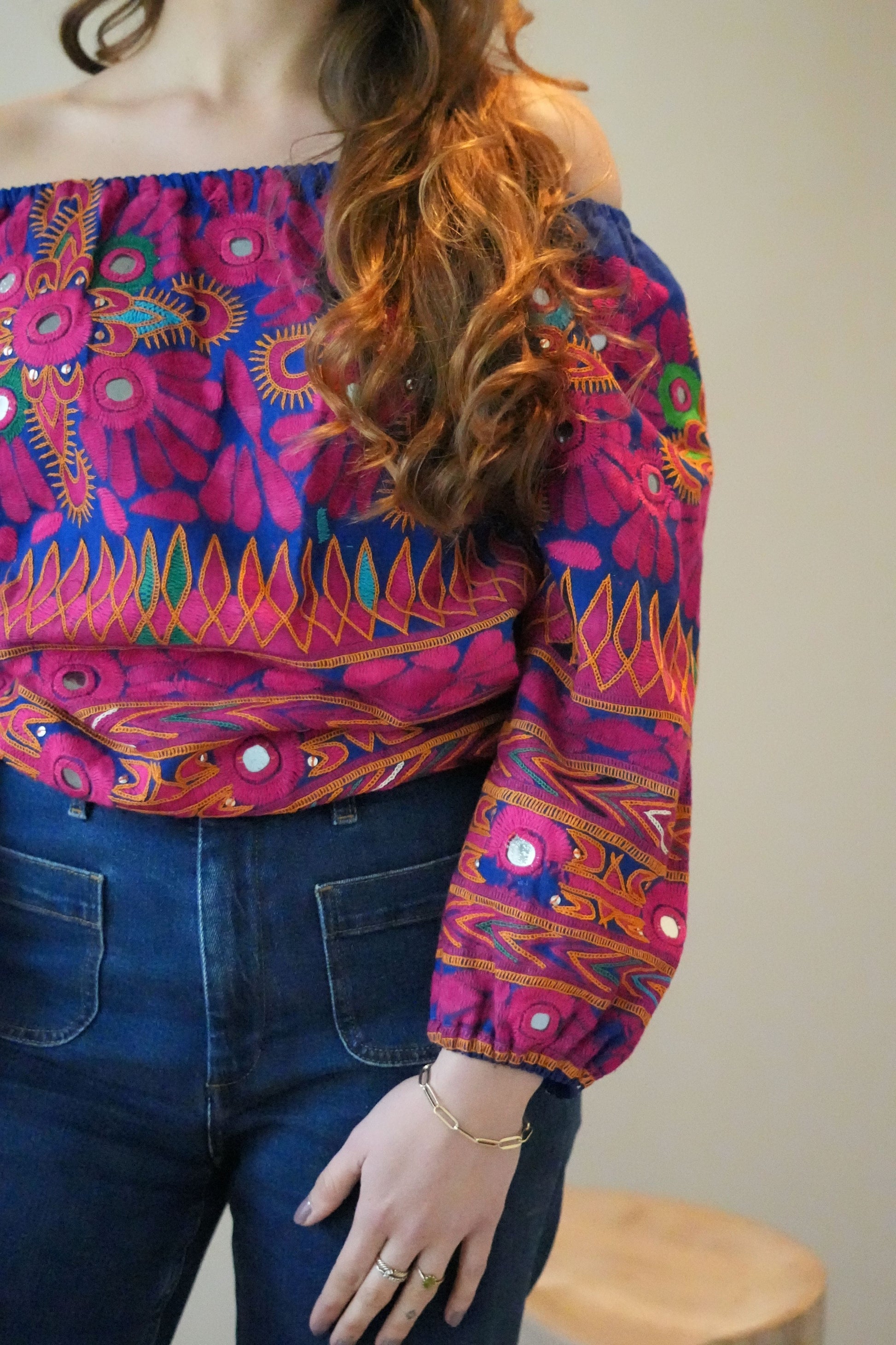 The Gujarati Top features authentic, colorful embroidery crafted by skilled artisans. Made from breathable, high-quality materials, it offers both comfort and style. Ideal for dressing up or down, this top pairs beautifully with jeans or skirts.