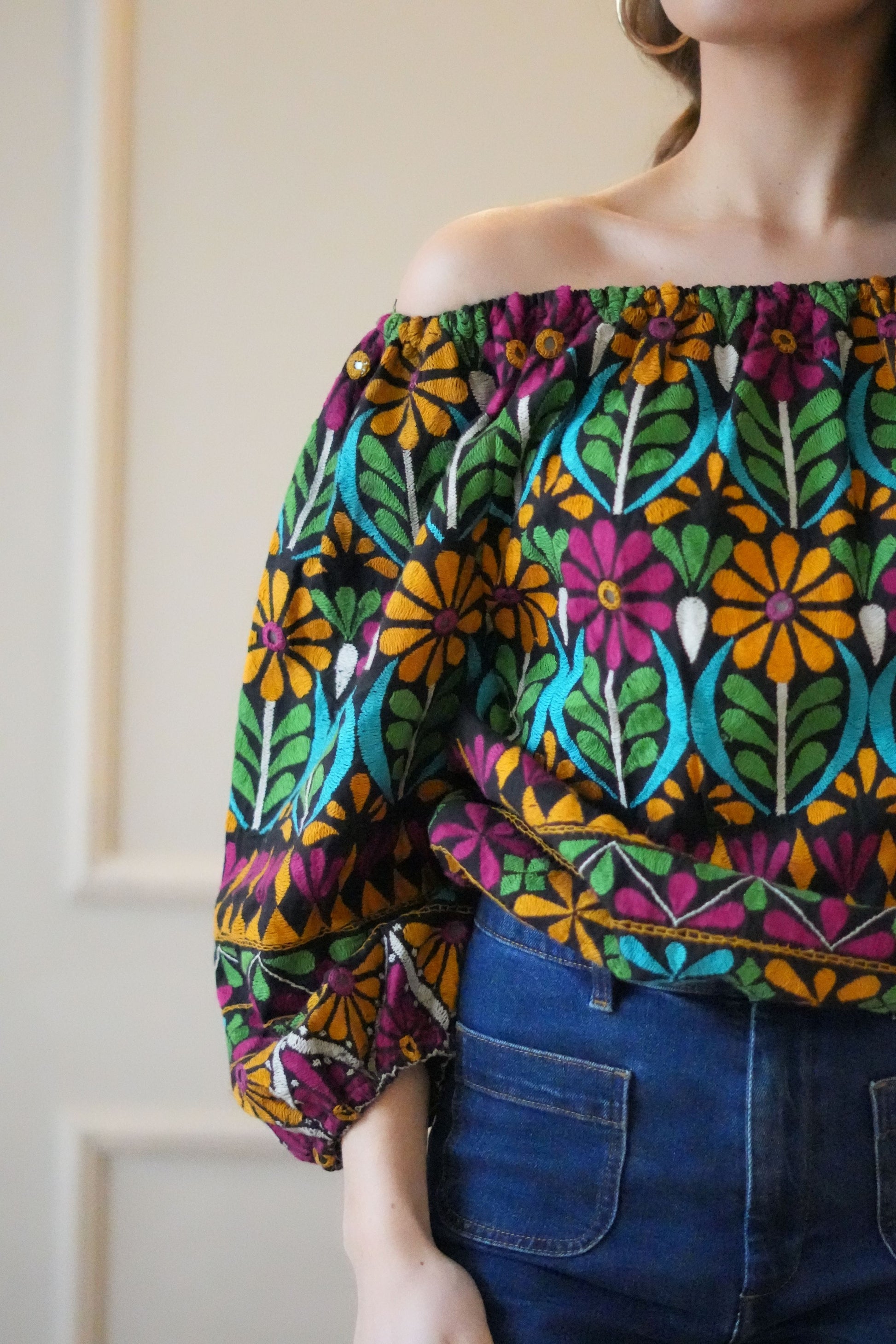 The Gujarati Top features authentic, colorful embroidery crafted by skilled artisans. Made from breathable, high-quality materials, it offers both comfort and style. Ideal for dressing up or down, this top pairs beautifully with jeans or skirts.
