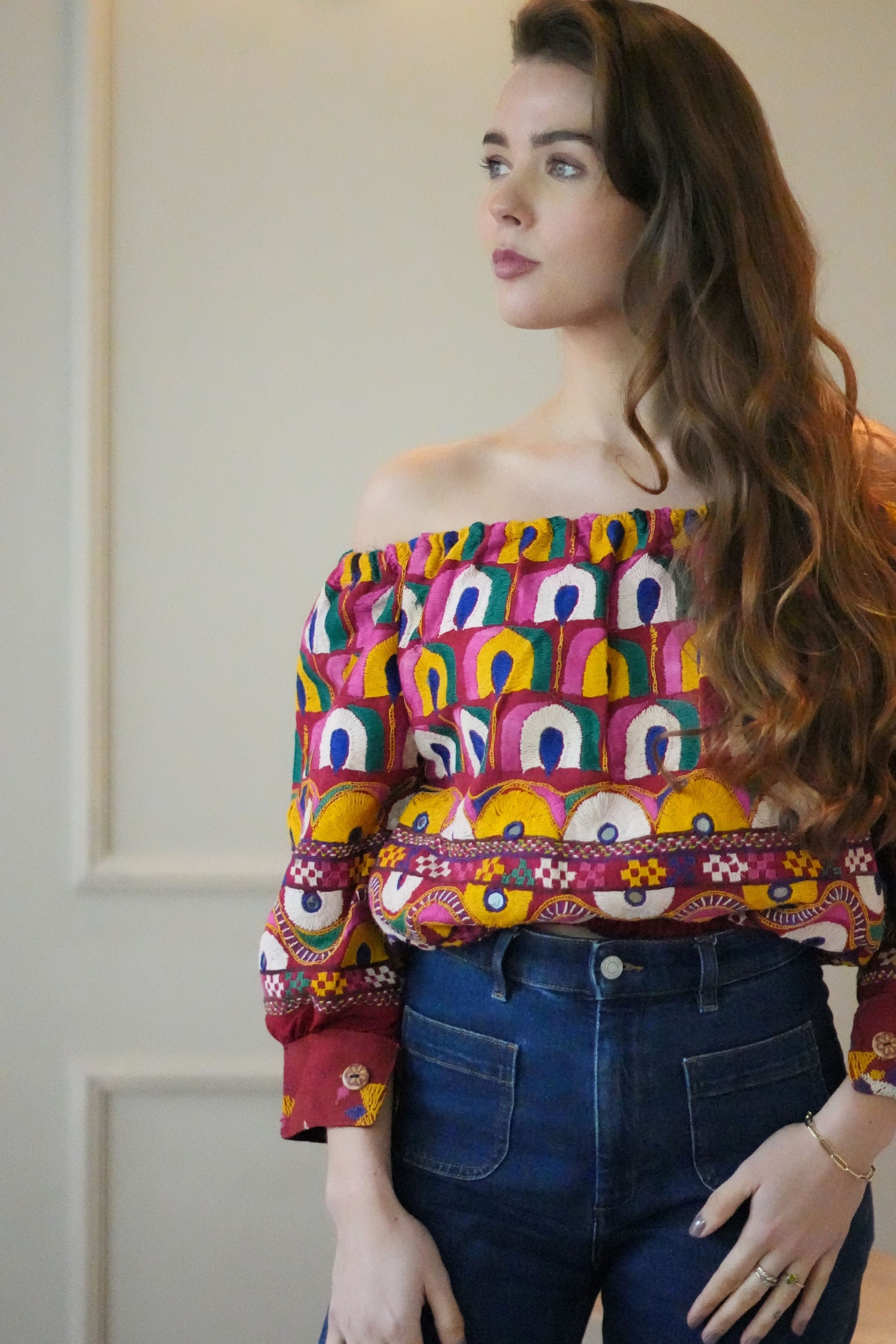 The Gujarati Top features authentic, colorful embroidery crafted by skilled artisans. Made from breathable, high-quality materials, it offers both comfort and style. Ideal for dressing up or down, this top pairs beautifully with jeans or skirts.