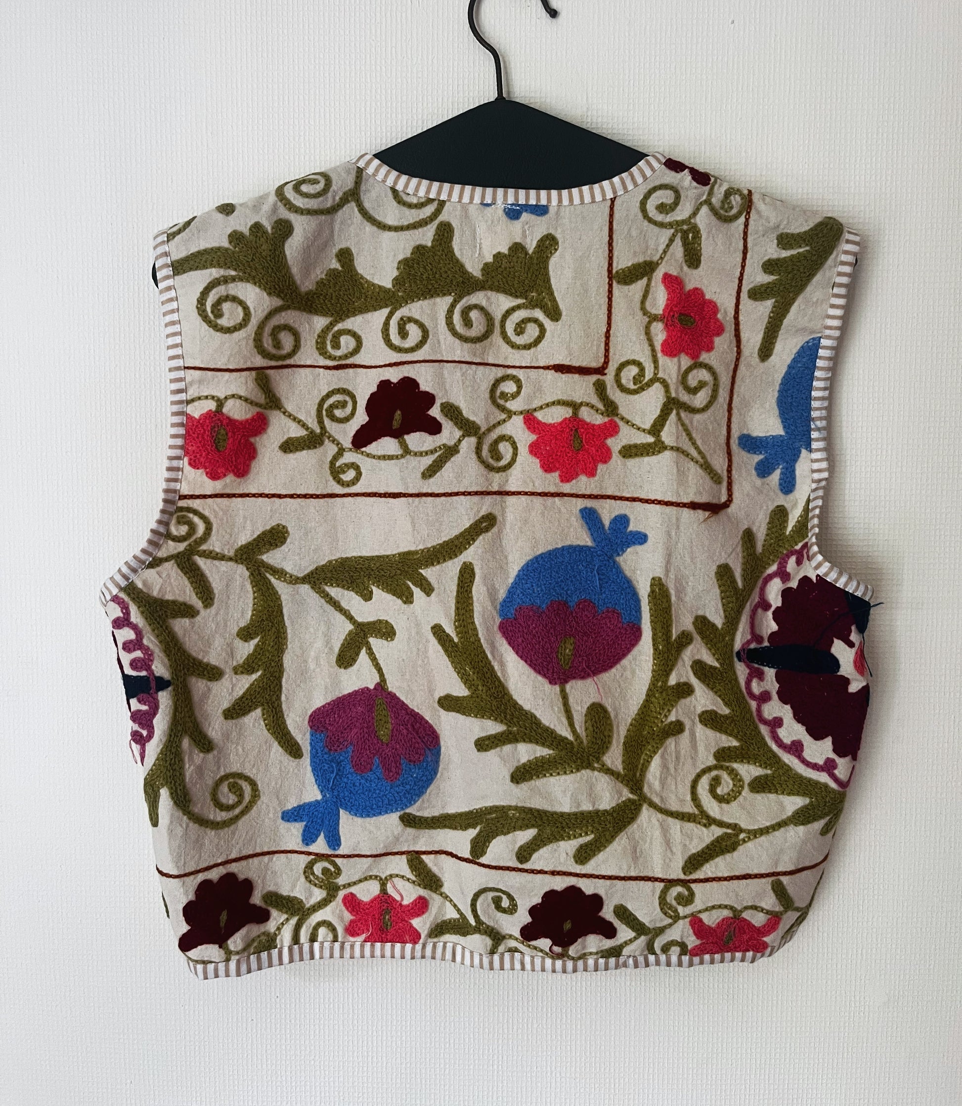 Each gilet is crafted with precision and passion by artisans, using traditional Suzani embroidery. Made from natural fabrics and fully lined, these pieces are made to stand out and last. Style them over knits, dresses or basics for a truly unique look.