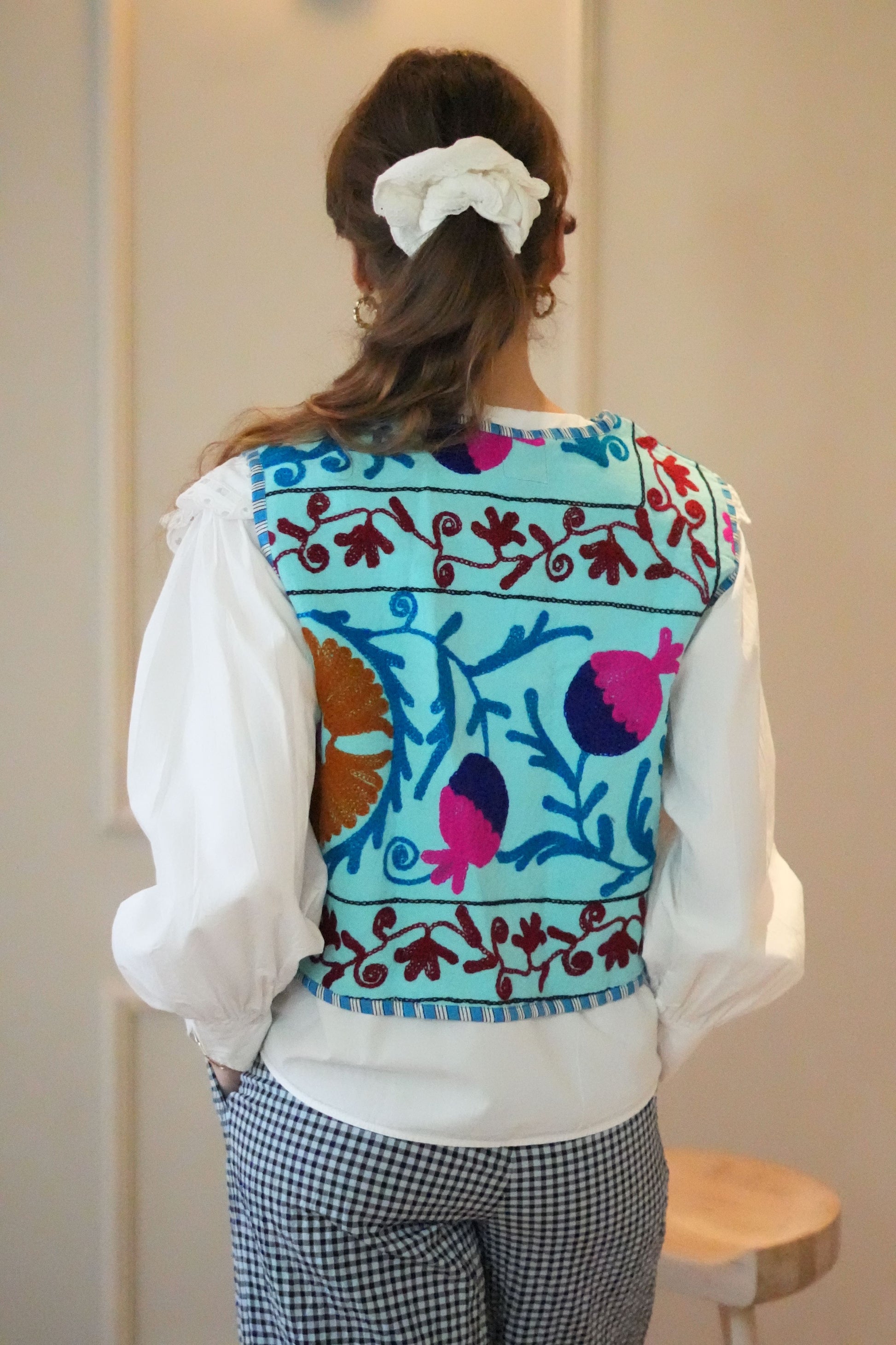 Each gilet is crafted with precision and passion by artisans, using traditional Suzani embroidery. Made from natural fabrics and fully lined, these pieces are made to stand out and last. Style them over knits, dresses or basics for a truly unique look.
